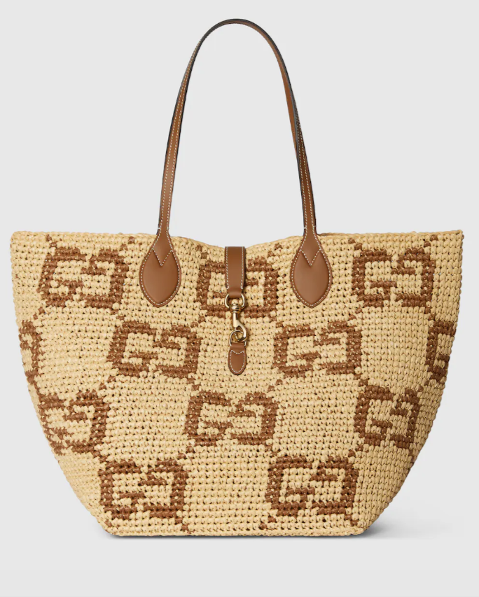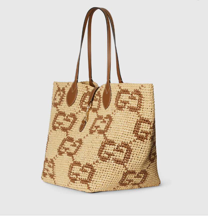 This pre-owned Woven Large Tote Bag brings effortless sophistication with a natural, summer-inspired design. Crafted in natural and brown raffia-effect fabric, it showcases the iconic GG pattern throughout. Finished with smooth brown leather trim and practical detailing, this tote balances elegance and functionality for everyday or travel use.
